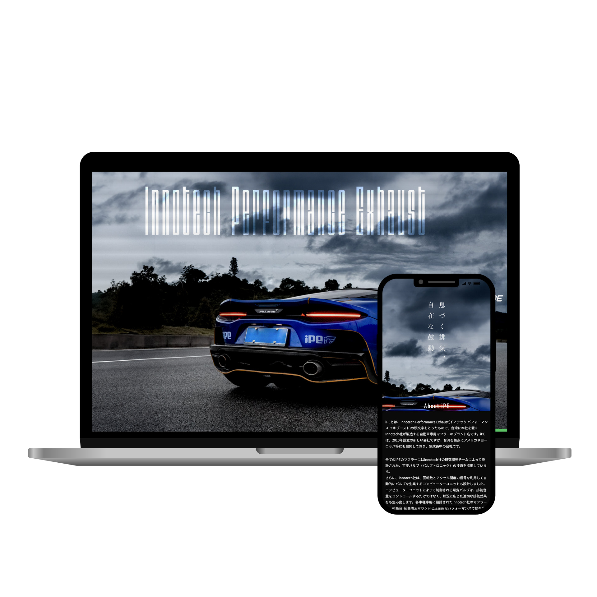 サイトは、自動車専用マフラーを扱うブランドイメージに合わせ、黒をベースにオレンジをアクセントとした2色構成。シンプルでありつつも、テキストなどにブレるようなタイポグラフィアニメーション演出を加えることで、スピード感と近未来的なサイバーパンクな世界観を演出し、“走る”音が聞こえてきそうな勢いある構成で、製品の「カッコよさ」が言葉を使わずとも伝わるデザインに仕上げました。